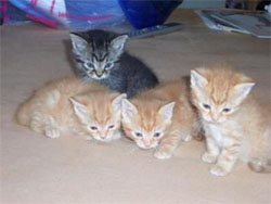 Hallo, wir sind 2 Jungs (grau-schwarz und rot getigert) und ein süßes rotes Tiger-Mädel und gerade mal 8 Wochen alt. Hier haben wir einen Garten und spielen ununterbrochen miteinander, wenn wir genug haben oder hungrig sind kommen wir auch selbständig wieder ins Haus und schmusen mit unserer Familie. Wir sind total zutraulich und putzig und freuen uns auf ein liebevolles Zuhause. Da wir weder entwurmt noch geimpft sind (das müssen unsere neuen Eltern machen), wird auch kein Schutzgeld verlangt. ***** Wer uns unser Leben lang lieb haben und füttern will, meldet sich bitte bei Manuela unter karina2k@web.de oder bei alzabel@chello.at, die Eure Nachrichten gerne weiterleitet. ***** *MIAU*